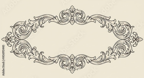 Classic Beige Vintage Frame with Ornamental Detailing - Retro Design Element