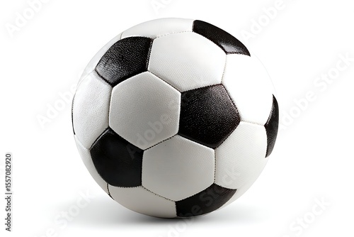 Classic black and white soccer ball isolated on a white background with subtle shadow