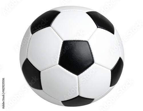 Classic Black and White Soccer Ball with Realistic Texture, Transparent PNG