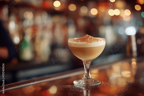Classic Brandy Alexander Cocktail with Creamy Texture and Nutmeg Garnish at Bar