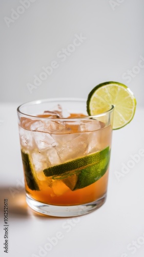 Classic Caipirinha Cocktail with Lime and Cucumber Garnish on White Background
