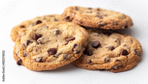 classic chocolate chip cookies, featuring a golden-brown, slightly crisp edge with a chewy center, dotted generously with chocolate chips