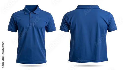 Classic Cobalt Blue Men's Polo Shirt Mockup: Front and Back Views, Isolated on White Background, Clean and Minimalist Style, Perfect for Branding and Design Presentations.