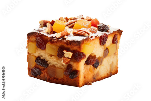 Classic Fruit Cake with Nuts and Dried Fruits isolated on transparent background