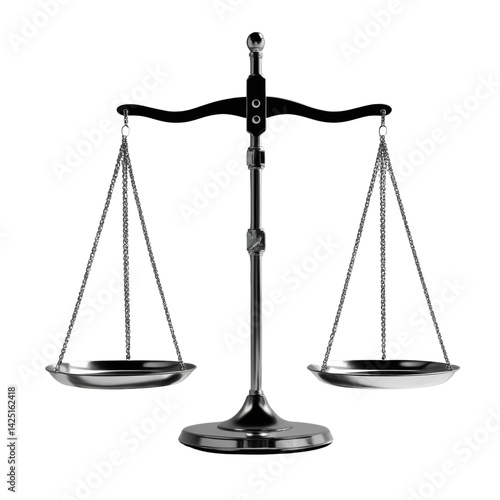 Classic metal balance scale symbolizing law, justice, and fairness in a minimal studio lighting setup isolated on a transparent background, png, cutout