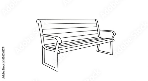 Classic park bench design rendered in clean outline style, perfect for outdoor leisure and urban planning concepts
