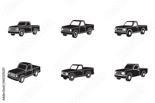 Classic Pickup Truck Icons Variety Pack Silhouette Style Automotive Industry Transportation Design Elements Illustration for Graphic Design Projects
