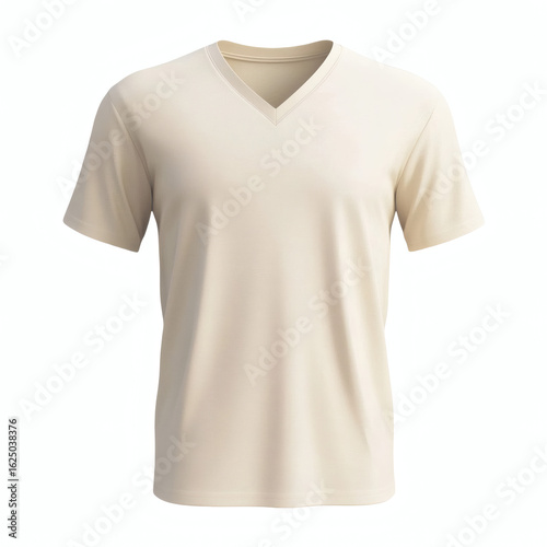 Classic plain cream V-neck short sleeve t-shirt 3D mockup, ideal for showcasing your custom prints and designs on a white background
