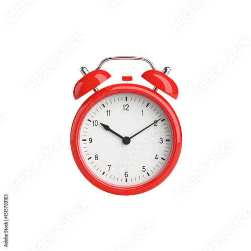 Classic Red Alarm Clock with Minimal Design Isolated on transparent background