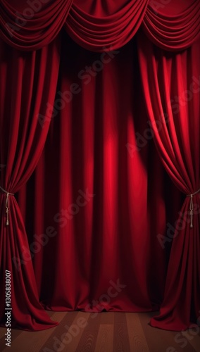 Classic Red Velvet Theater Curtains Stage Background. Perfect for theatrical presentations, entertainment websites, formal event backdrops