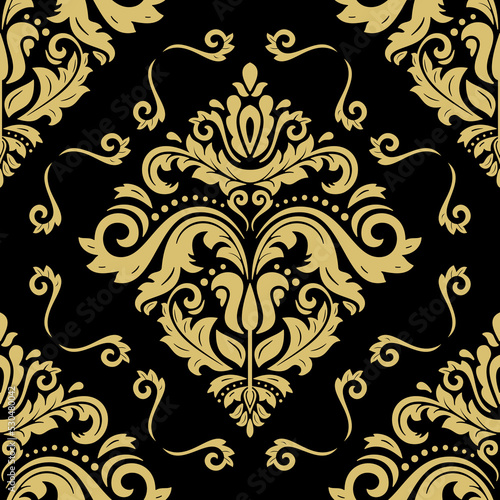 Classic seamless vector pattern. Damask orient black and golden ornament. Classic vintage background. Orient pattern for fabric, wallpapers and packaging