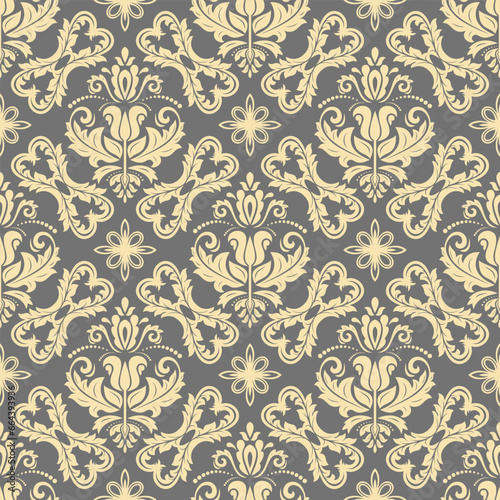 Classic seamless vector pattern. Damask orient ornament. Classic vintage gray and golden background. Orient pattern for fabric, wallpapers and packaging