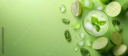 Classic summer drink mojito featuring lime and mint Top view with copy space