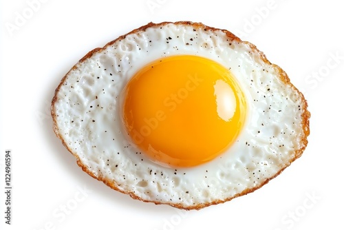 Classic Sunny-Side Up Fried Egg Perfectly Cooked on a White Background, High-Angle View