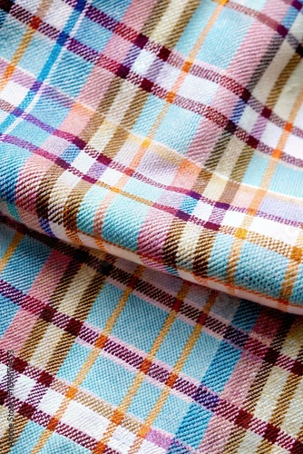 Classic Tartan Plaid Fabric Pattern with Warm Yellow, Soft Peach, and Light Blue
