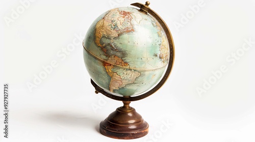 Classic vintage 1541 mercator, globe vaugondy globe with a wood stand on a white background
