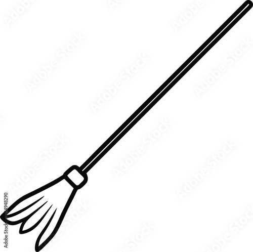 Classic Witch Broom Line Art Simple Black Outline Halloween Design