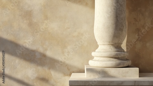 Classical Column in Sunlight: Architectural Detail Against a Textured Wall