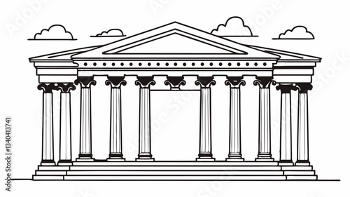 Classical Greek Temple Vector Art, Corinthian Column Architecture Vector Illustration, Ancient Roman Building Vector Design, Symmetrical Classical Architecture Vector Drawing