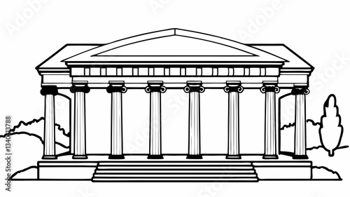 Classical Greek Temple Vector Art, Corinthian Column Architecture Vector Illustration, Ancient Roman Building Vector Design, Symmetrical Classical Architecture Vector Drawing