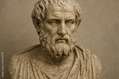 Classical marble bust of ancient Greek philosopher with weathered patina and timeless scholarly expression