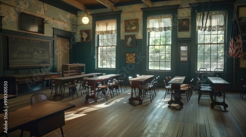 Classroom with historical artifacts and exhibits.