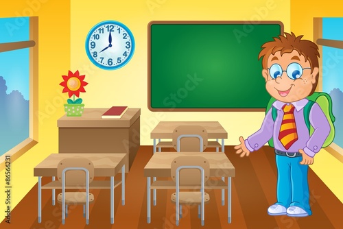 Classroom with schoolboy