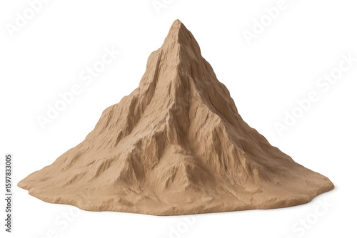 Clay mountain rendered against transparent backdrop, ideal for graphic design and illustration needs
