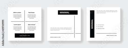 Clean and elegant social media templates pack with magenta background elements. Instagram posts for business with place for photos
