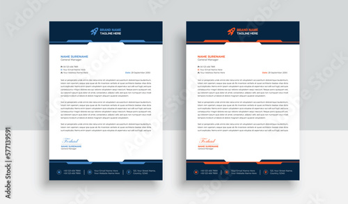 Clean and professional corporate company business letterhead template design with color variation bundle with blue, red elements and creative business stationery layout