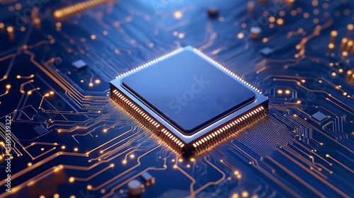 Clean Blue Circuit Board Technology with Microprocessor Detail