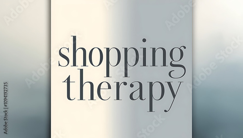 Clean, bold poster with “Shopping Therapy” in dynamic, modern typography, paired with a simple, calming background.
