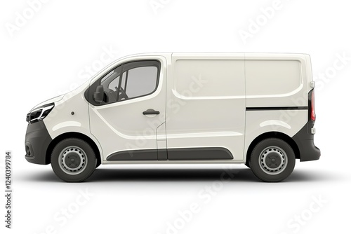 Clean, Crisp White Van: Side Profile, Isolated on White Background. Perfect for transportation, delivery, logistics, and business branding visuals. Ideal for websites, marketing materials, and design