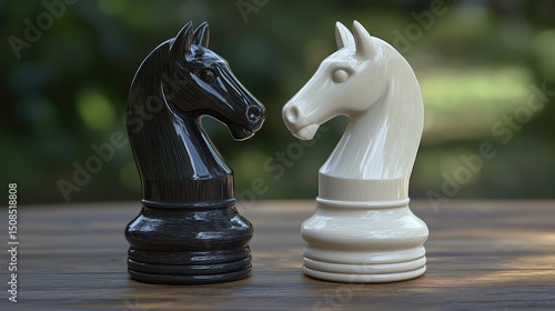 Clean design with all black pieces set on one side and white on the other, ready to play