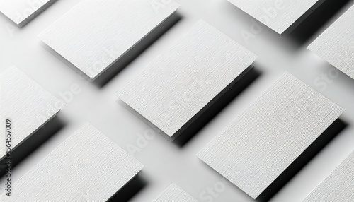 Clean, diagonal arrangement of blank business cards on subtle patterned surface, marketing, background. High quality