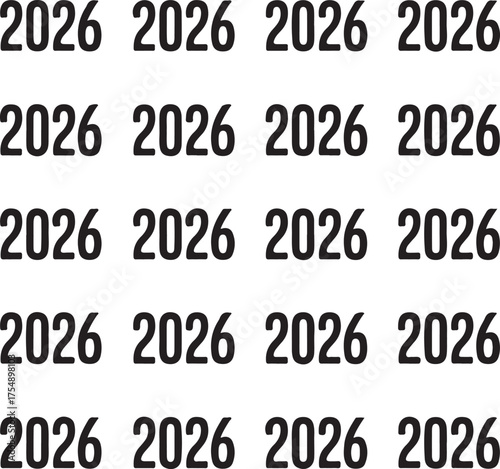 Clean minimalist grid pattern featuring the year 2026 repeated in simple black typography