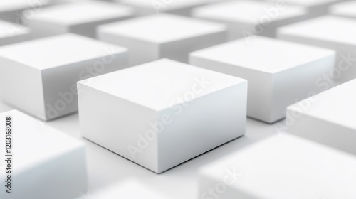 Clean white cubes subtly arranged create calming minimalist scene. AI Generated