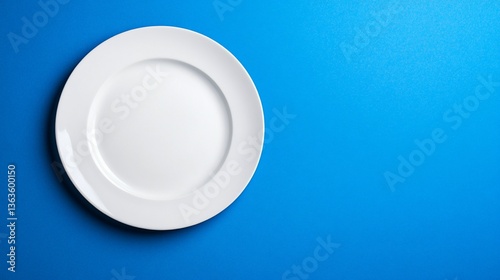 Clean, white plate on a bright blue background with empty center space