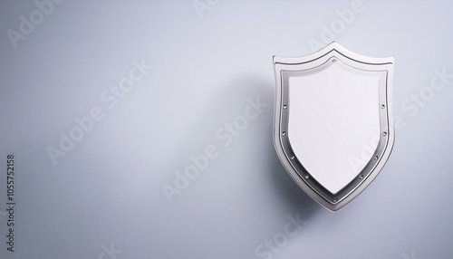 Clean white shield with mock up place on light background. Protection, antivirus and safety concept. 3D Rendering.