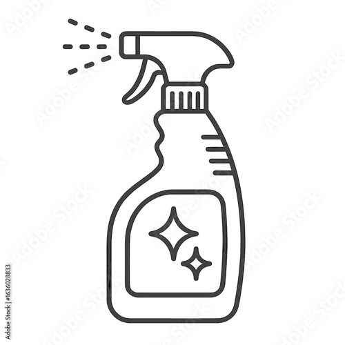 Cleaning Spray Icon. Line style icon of a cleaning spray bottle: trigger nozzle, clear liquid level, ergonomic bottle shape, label