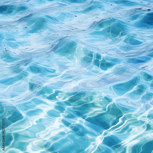 Clear blue water in a swimming pool. Sunlight reflecting on the surface. Generative AI.