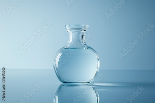 Clear glass bottle with liquid against a muted backdrop.