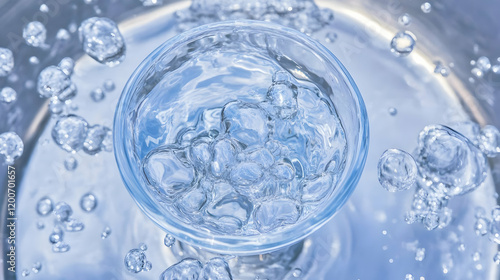 Clear Glass Filled with Water and Bubbles Creates a Refreshing Visual with Dynamic Liquid Motion.