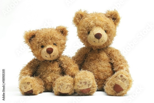 Clear Pixel Image of Two Small and Big Brown Teddy Bear Isolated on White Background