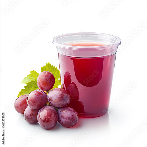 Clear Plastic Cup Filled with Fresh Grape Juice Next to a Bunch of Purple Grapes