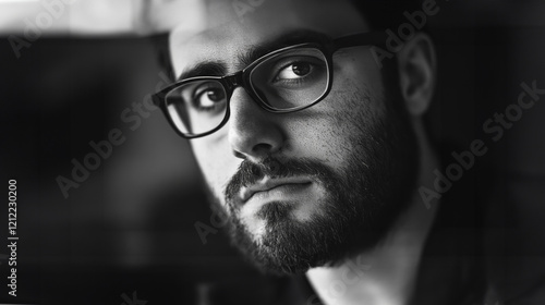 Client shows a thoughtful expression while reflecting on a challenging problem in a modern office environment