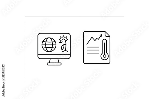 Climate change icon with globe and temperature chart symbols vector line icon illustration