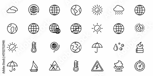 Climate Change Icons Depicting Global Warming, Weather Patterns, and Environmental Concerns, Perfect for Educational and Awareness Campaigns About Earth's Future