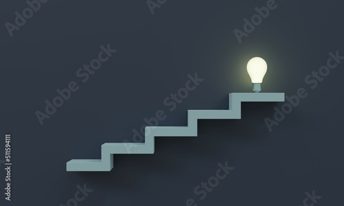 Climbing stairway to success concept of light bulb or bright idea on top of stairs 3D rendering illustration