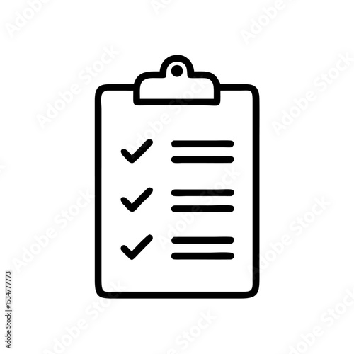 Clipboard Checklist Icon Representing Task Management and To-Do List with Check Marks in Minimalist Outline Style